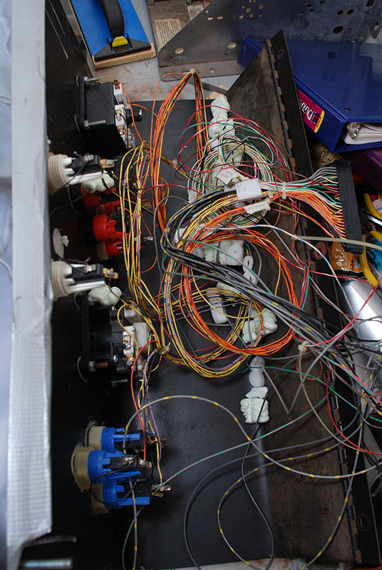 The inside of it. The P1 stick is a leaf switch setup, P2 is a normal 8 way. I forgot this thing had a full harness on it. Why is a full harness still attached you ask?...